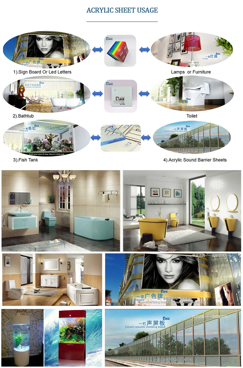 1. Acrylic board also known as perspex is an important thermoplastic material early developed. Mainly used in construction, sanitary ware, advertising, decoration and so on. As a sound barrier transparent material, there are less applications in domestic. This board has good weather resistance, no need for UV treatment, color transparent, large surface which can be made and simple fixed way and so on. While it is conducive to clean dust, with good landscape effect.